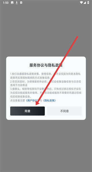 1、點擊服務(wù)協(xié)議與隱私政策彈窗的同意按鈕,進入登錄界面。
