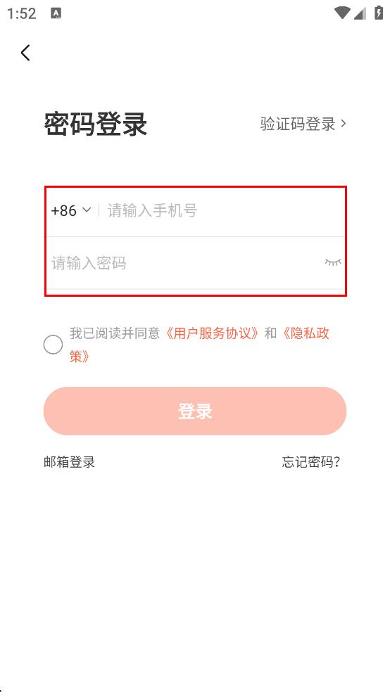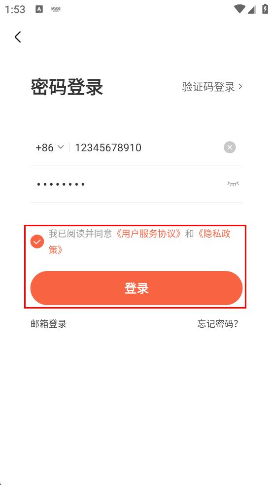 3、在密碼登錄頁面,輸入手機號和密碼。