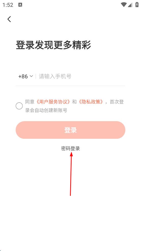 2、在登錄選擇頁面,點擊“密碼登錄”,進入密碼登錄頁面。