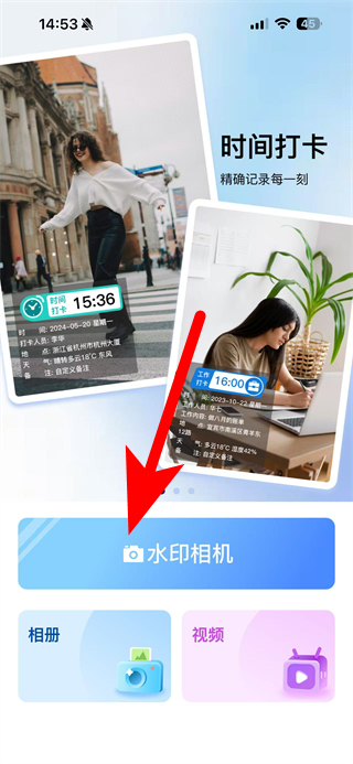 1、打開經(jīng)緯相機應(yīng)用,點擊水印相機選項,進入拍攝界面。