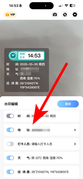 3、進入水印編輯界面后,找到地址選項并點擊。