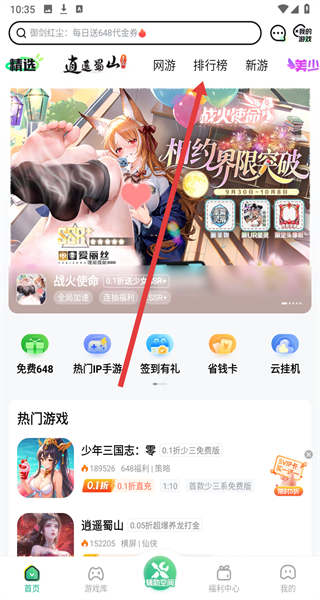 2、主界面點擊“排行榜”,進入游戲排行頁面。