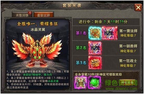 《天神主宰》延續(xù)傳奇經(jīng)典,戰(zhàn)法道的經(jīng)典配合,完美演繹獨(dú)一無(wú)二的傳奇世界。宏大的背景、精美的地圖、特色的系統(tǒng),四圣獸的守護(hù),帶你征戰(zhàn)沙場(chǎng)。全民PK,自由掠奪,多樣跨服戰(zhàn),帶給你豐富多彩的游戲體驗(yàn)。