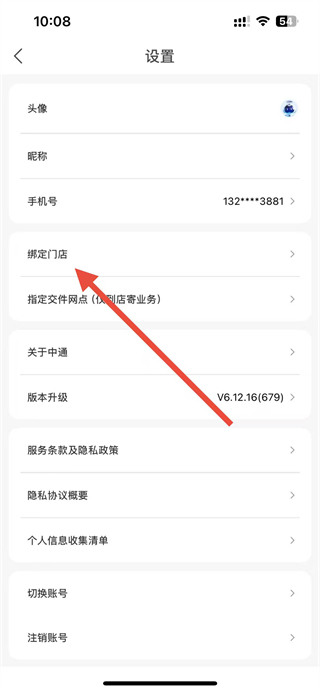3、在設置頁面點擊綁定門店選項,進入綁定門店頁面。
