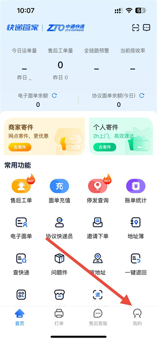 1、在中通快遞app首頁點擊我的選項,進入個人頁面。