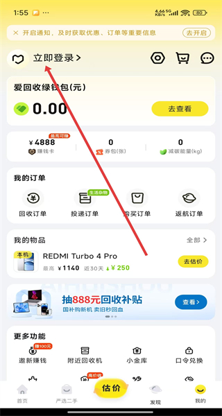 1、在愛回收主界面點擊右下角“我的”,進(jìn)入個人中心頁面。