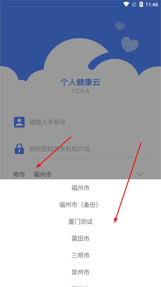 2、選擇所在的地市,從福州市、福州市備份、廈門測試、莆田市等中選擇符合的。