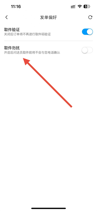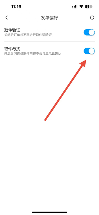 3、在發(fā)單偏好頁面,找到取件勿擾功能選項。