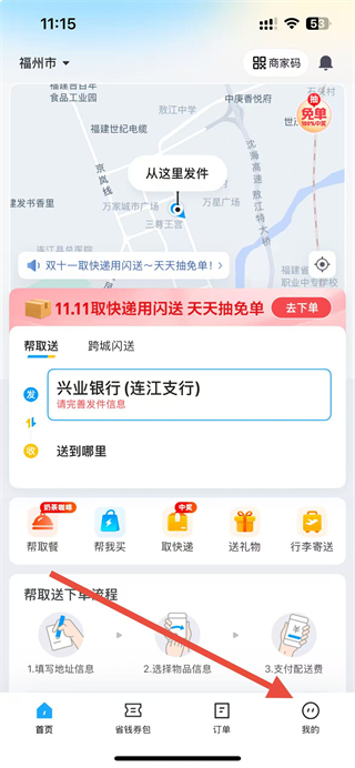 1、在閃送員app首頁點擊我的選項,進(jìn)入個人頁面。