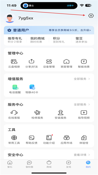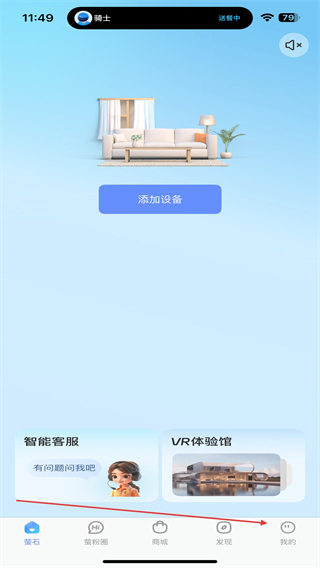 1、啟動(dòng)螢石云視頻的應(yīng)用,在首頁(yè)右下點(diǎn)擊我的圖標(biāo)。