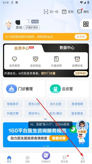 1、打開160醫(yī)護(hù)APP,點(diǎn)擊導(dǎo)航欄中的我的。
