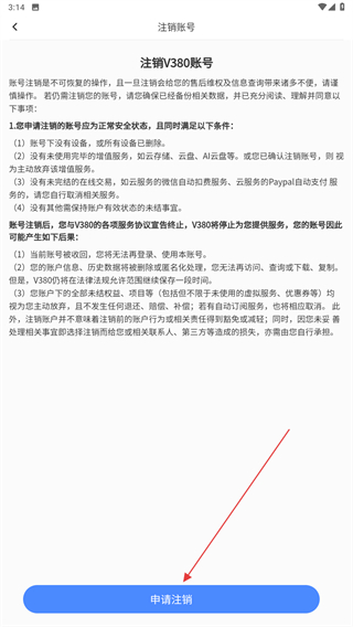 4、進入注銷賬號的頁面內(nèi),熟知后點擊下方申請注銷即可。