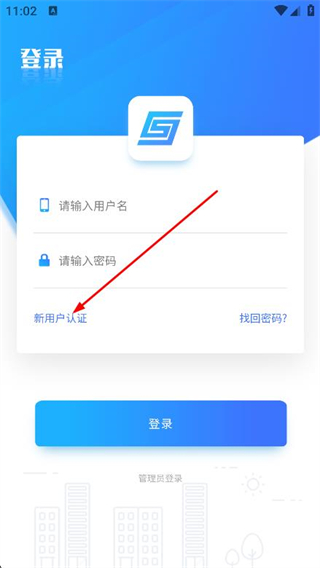 1、打開上海干部在線app,在登錄頁面點擊新用戶認證選項。