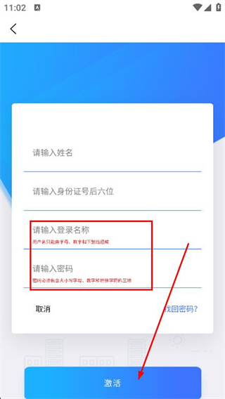 3、輸入登錄名稱和密碼,點擊激活即可完成注冊賬號和密碼。