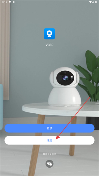 1、打開v380的APP,在首頁內(nèi)點擊注冊的功能按鈕。