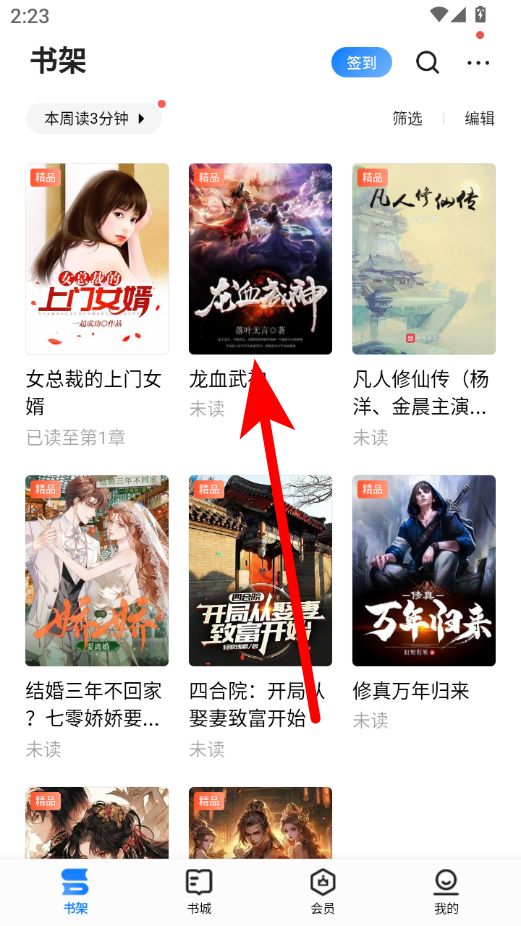 1、在掌閱書架頁面,點擊要查看目錄的書籍封面,進(jìn)入書籍詳情頁。