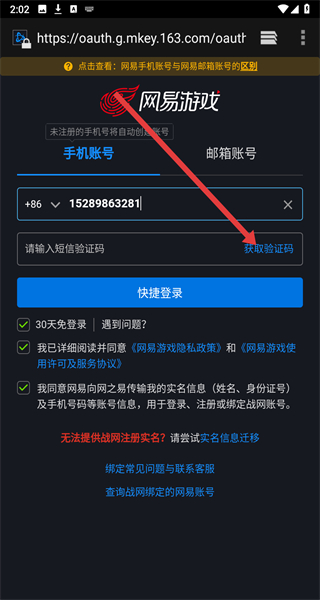 3、在登錄界面輸入手機(jī)號碼,點(diǎn)擊“獲取驗(yàn)證碼”。