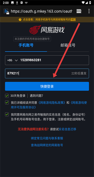 4、輸入收到的短信驗(yàn)證碼,點(diǎn)擊“快捷登錄”,完成賬號注冊登錄。