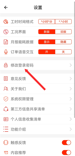 3、在設(shè)置的頁(yè)面,點(diǎn)擊修改登錄密碼,進(jìn)入修改密碼的頁(yè)面。