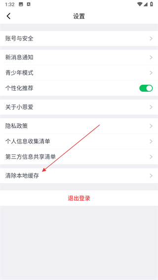 3、在設(shè)置頁(yè)面中,向下滑動(dòng)找到并點(diǎn)擊清除本地緩存選項(xiàng)。