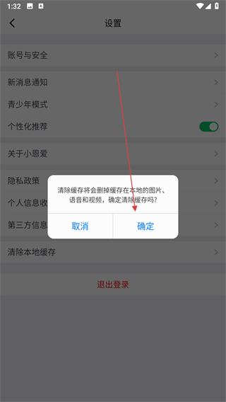 4、在彈出的確認(rèn)提示框中,點(diǎn)擊確定,即可完成本地緩存的清理。