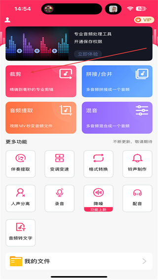 1、打開音頻音樂剪輯的APP,進(jìn)入首頁點(diǎn)擊裁剪的功能按鈕。