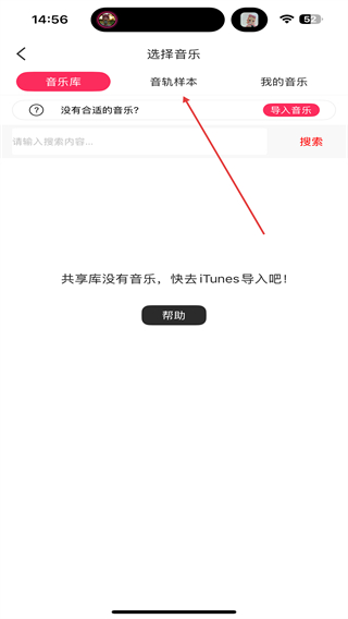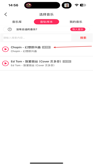 2、進(jìn)入選擇音樂的頁面內(nèi),用戶需點(diǎn)擊音軌樣本的功能按鈕。