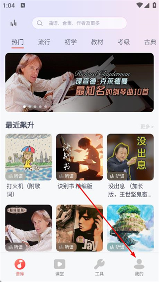 1、打開(kāi)鋼琴譜大全app,點(diǎn)擊底部導(dǎo)航欄的我的選項(xiàng)。