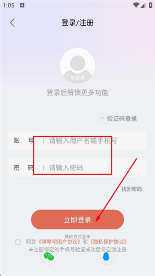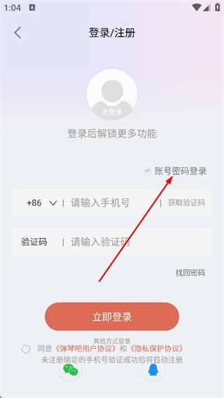 3、進(jìn)入登錄/注冊(cè)頁(yè)面后,選擇并點(diǎn)擊賬號(hào)密碼登錄。