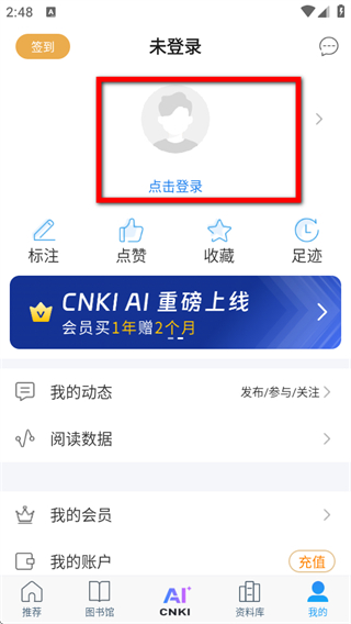 1、在全球?qū)W術(shù)快報(bào)個(gè)人界面,點(diǎn)擊點(diǎn)擊登錄區(qū)域,進(jìn)入登錄選擇頁面。