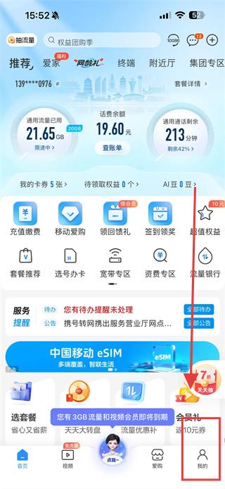 1、打開中國(guó)移動(dòng)北京APP,點(diǎn)擊右下角我的,進(jìn)入個(gè)人頁面。