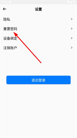 3、在設(shè)置頁(yè)面點(diǎn)擊重置密碼選項(xiàng),進(jìn)入重置密碼頁(yè)面。