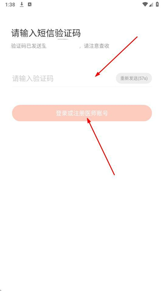 3、在短信驗(yàn)證碼頁面,輸入收到的驗(yàn)證碼,完成醫(yī)師賬號(hào)注冊(cè)。