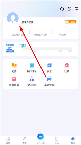 1、打開充電圈APP,點(diǎn)擊右下角我的進(jìn)入個(gè)人頁面。