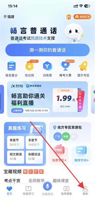 1、打開暢言普通話app,點擊底部導航欄的我的選項。