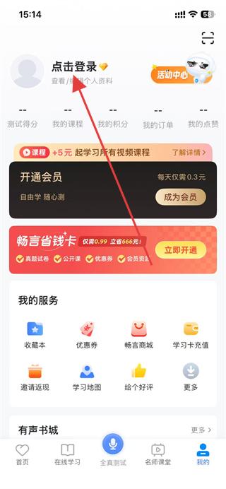 2、在我的頁面中,找到并點擊上方的點擊登錄區(qū)域。