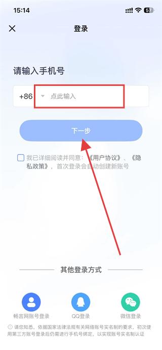3、進入登錄頁面后,輸入手機號,點擊下一步按鈕。