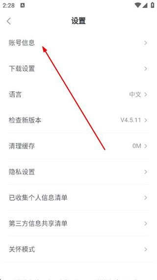 3、進(jìn)入設(shè)置頁(yè)面后,找到并點(diǎn)擊上方的賬號(hào)信息選項(xiàng)。