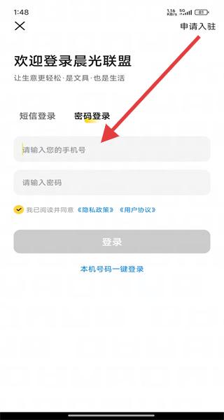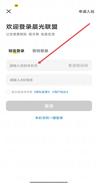 3、在進入到登錄頁面后,可以點擊輸入框填寫手機號以便獲取驗證碼進行登錄。