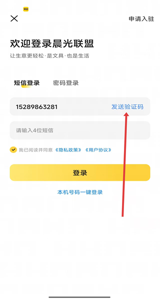 4、勾選我已閱讀并同意,點擊“發(fā)送驗證碼”,輸入收到的驗證碼后點擊“登錄”按鈕,完成賬號登錄流程。