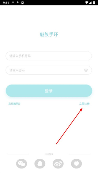 1、打開魅族手環(huán)APP,在登錄頁面點擊立即注冊。