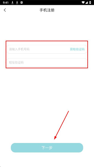 2、在手機注冊頁面,輸入手機號碼,填入短信驗證碼,點擊下一步。