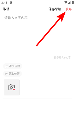 4、在編輯頁面輸入文字內(nèi)容,添加話題等信息,編輯完成后點(diǎn)擊發(fā)布。