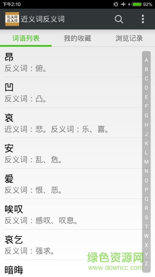 近義詞反義詞app是一款無需聯(lián)網(wǎng)即可查找近反義詞的應(yīng)用,軟件相當(dāng)于一款電子版的詞典,解決了傳統(tǒng)意義上詞典、字典厚重不方便的問題,讓你隨身攜帶,隨時(shí)隨地想看就看??梢詭椭脩舨檎以~語軟件可以按照拼音查找十分的方便還可以查成語,查多音字等等功能,可以方便快捷的的查詢,還在等什么?快來綠色資源網(wǎng)下吧。
