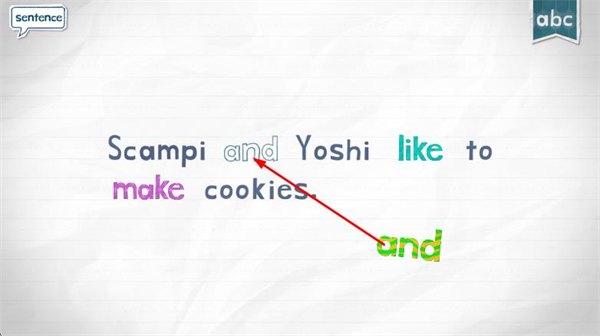 4、將散落的單詞,拖動到句子中正確的位置,即可通關。