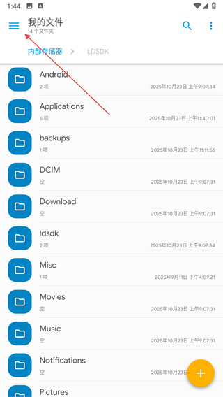 1、打開(kāi)SE文件管理器,進(jìn)入我的文件頁(yè)面,點(diǎn)擊界面右下角的黃色+按鈕。