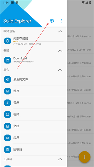 2、在彈出的側(cè)邊欄中,點(diǎn)擊齒輪形狀的設(shè)置圖標(biāo)。