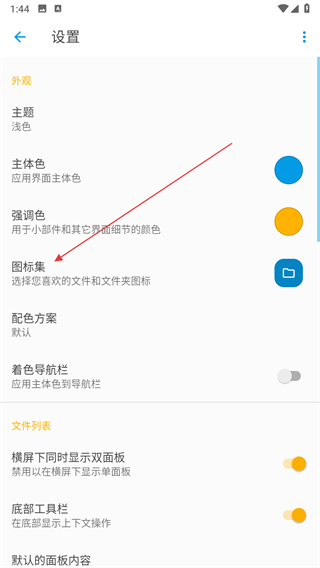 3、進(jìn)入設(shè)置頁(yè)面后,點(diǎn)擊圖標(biāo)集選項(xiàng)。