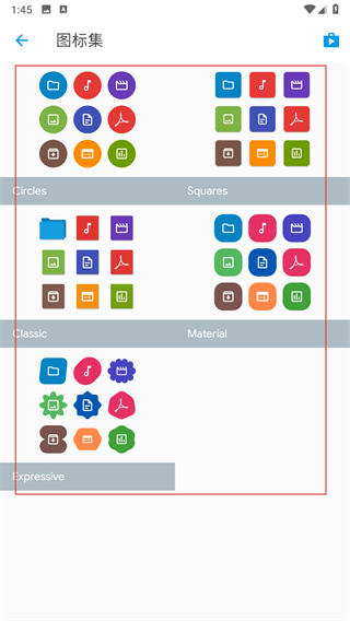 4、在圖標(biāo)集頁(yè)面,選擇喜歡的圖標(biāo)樣式即可完成更改。