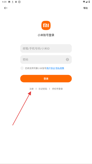 3、在密碼登錄的頁面內(nèi),用戶需找到并點(diǎn)擊注冊的按鈕。